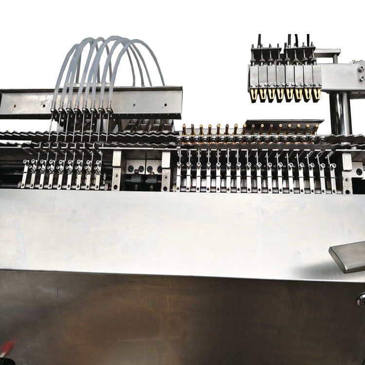 ● AGL series ampoule filling and sealing machine is suitable for filling and sealing the ampoule filling liquid in the pharmaceutical and chemical industries. The piston metering pump is used for quantitative filling, and the bottle can automatically stop the filling when there is no bottle. The gas can use gas、liquefied natural gas or liquefied petroleum gas. The machine is eight-nozzle type, compact in structure, stable and reliable in operation, convenient in adjustment and operation, and complete in function.
